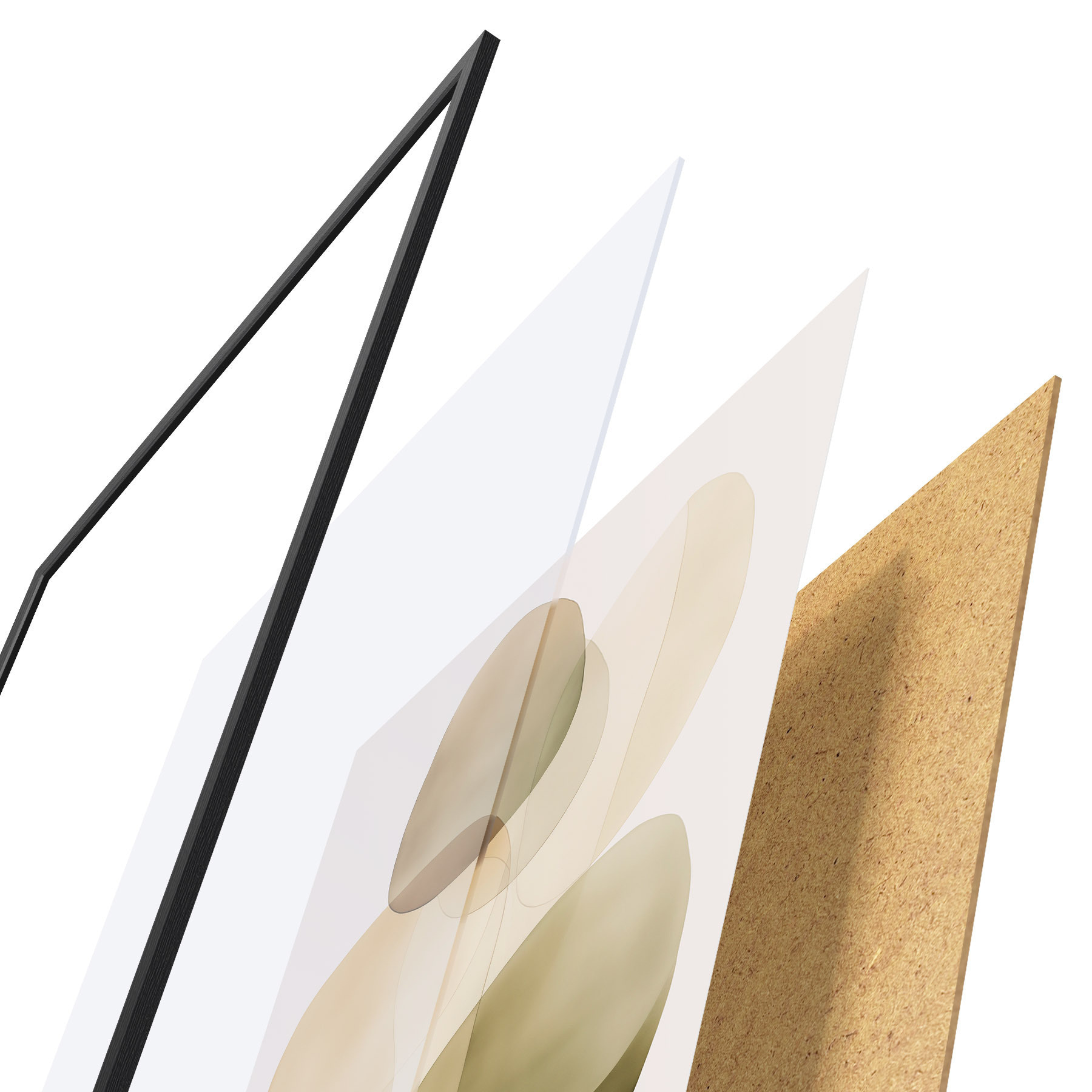 A poszter keretből, plexiből, nyomtatott képből és forgácslap hátlapból áll. A poszter a hátoldalon található rögzítőknek köszönhetően azonnal felakasztható a falra.
