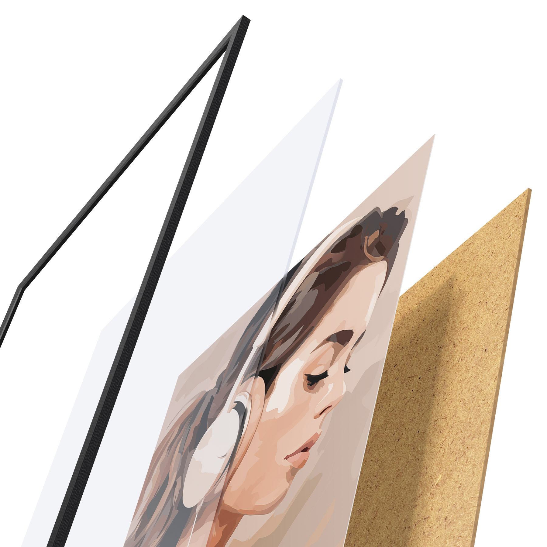 A poszter keretből, plexiből, nyomtatott képből és forgácslap hátlapból áll. A poszter a hátoldalon található rögzítőknek köszönhetően azonnal felakasztható a falra.