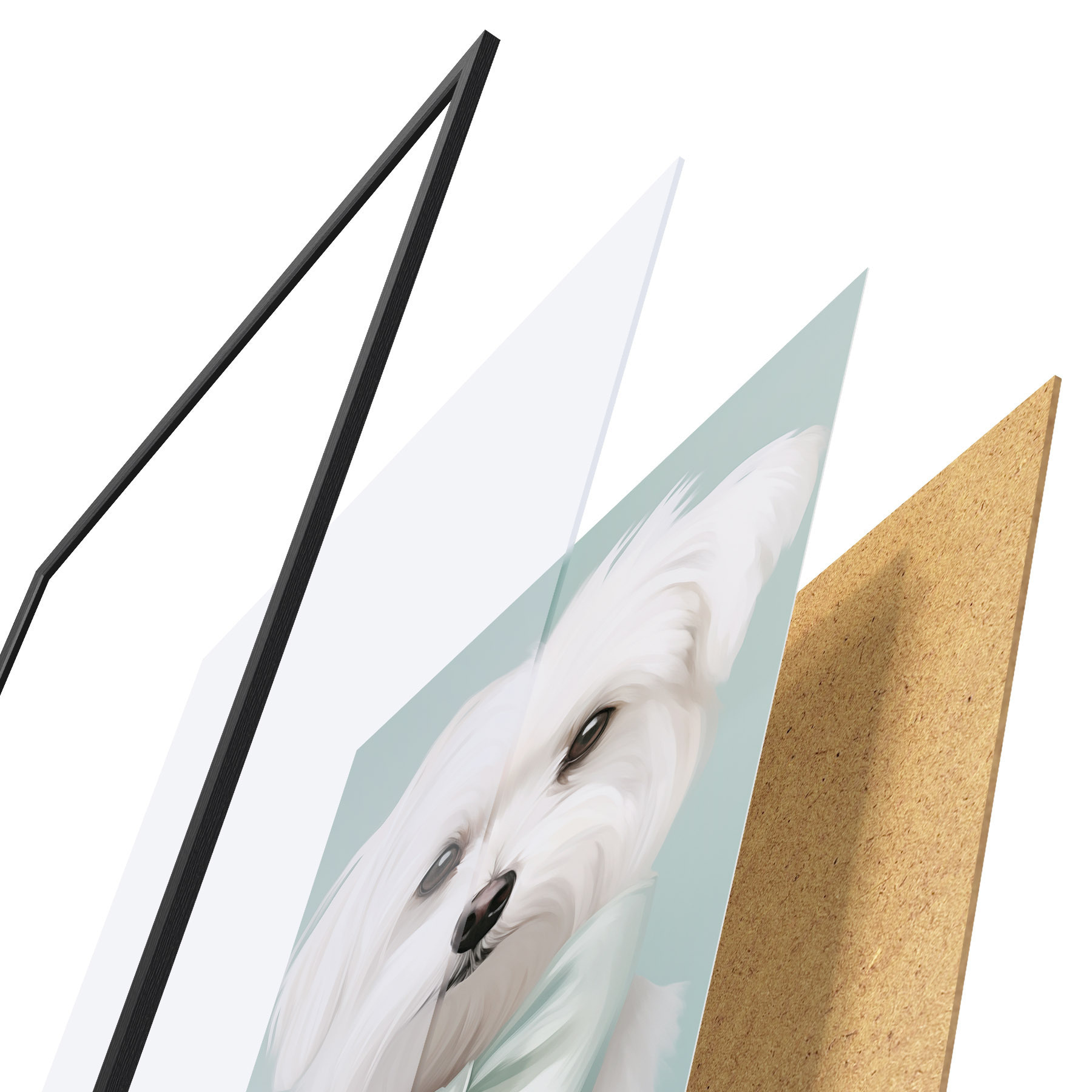A poszter keretből, plexiből, nyomtatott képből és forgácslap hátlapból áll. A poszter a hátoldalon található rögzítőknek köszönhetően azonnal felakasztható a falra.