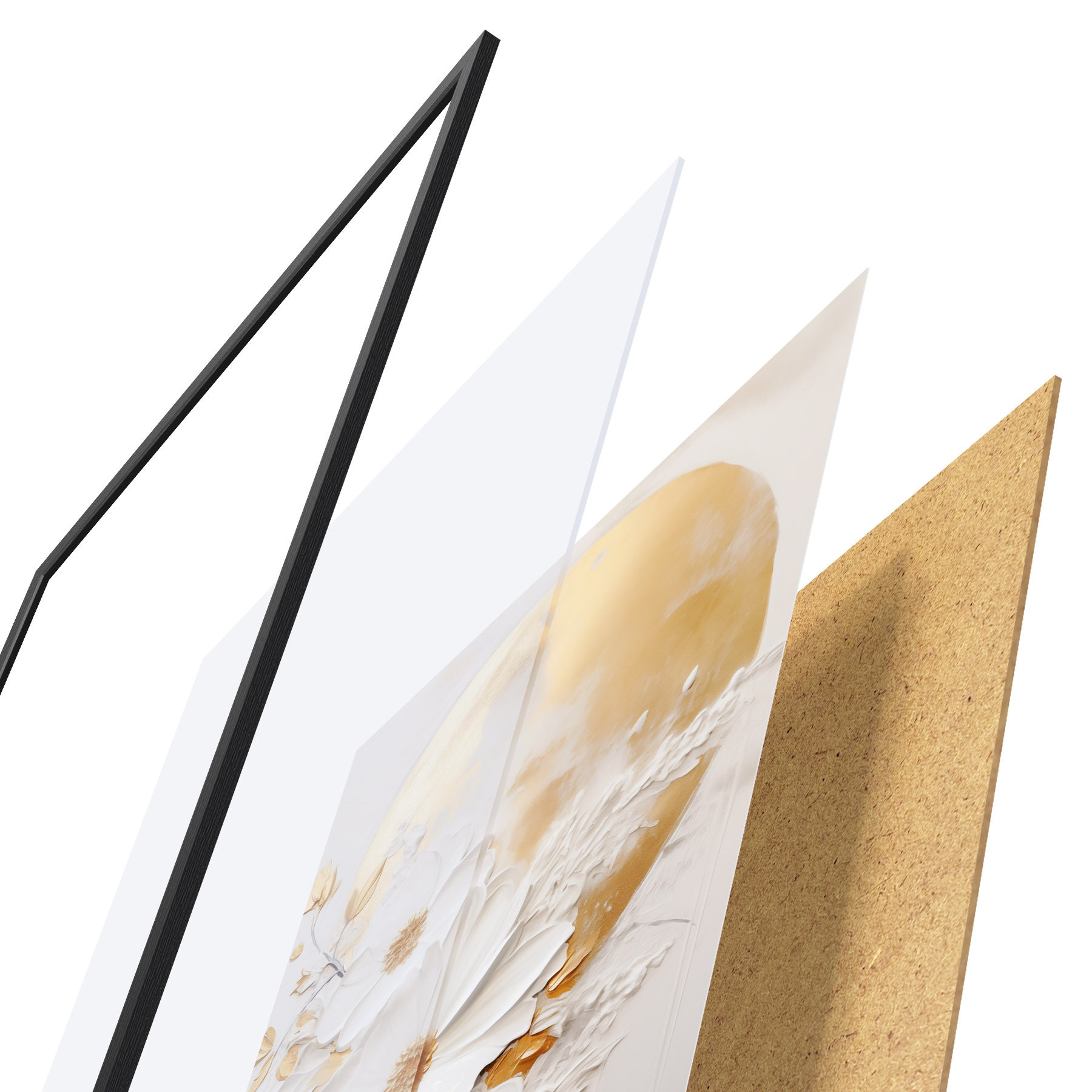 A poszter keretből, plexiből, nyomtatott képből és forgácslap hátlapból áll. A poszter a hátoldalon található rögzítőknek köszönhetően azonnal felakasztható a falra.