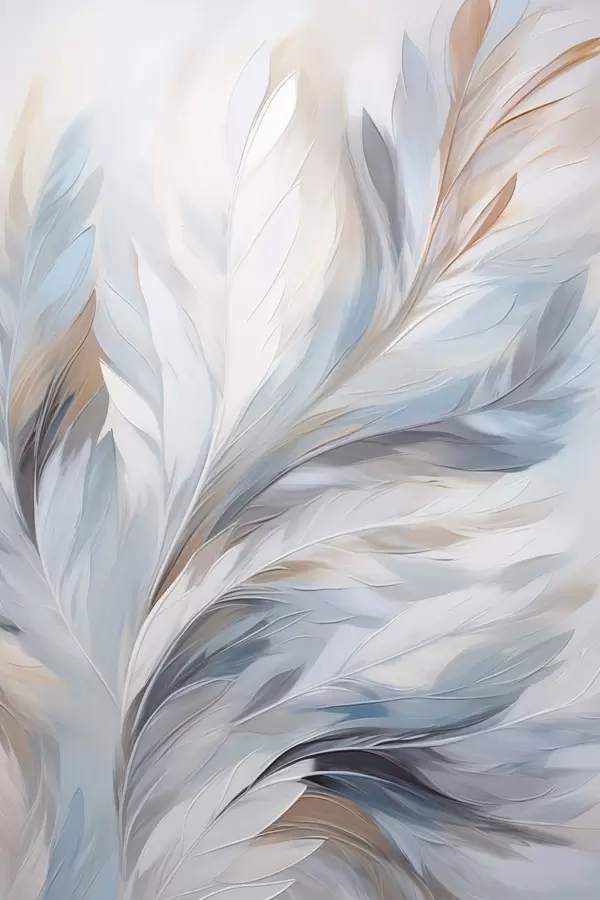 Plakát a sziklán Finom, világoskék és barna tollak, puha, éteri textúrával, fehér háttér előtt f47416