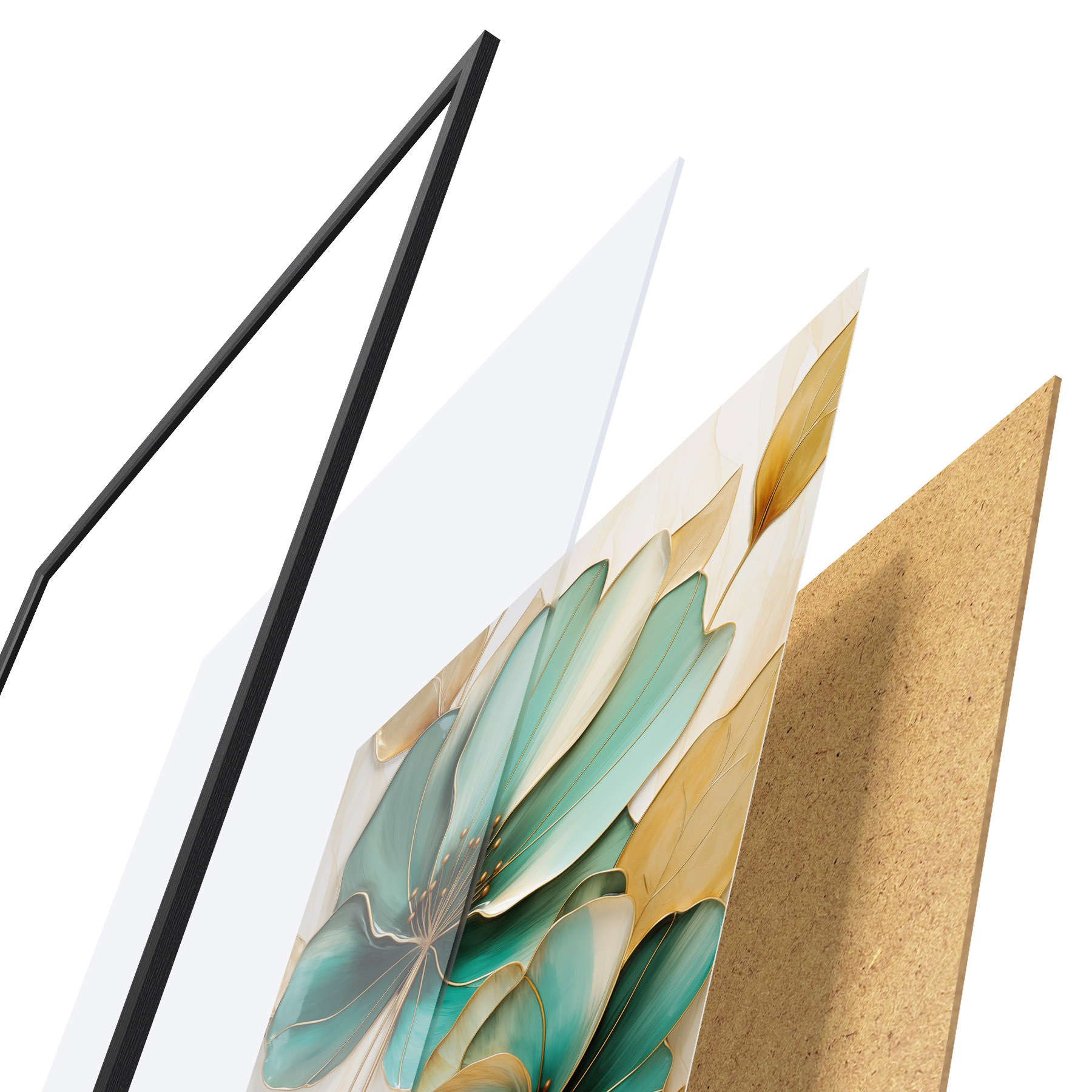 A poszter keretből, plexiből, nyomtatott képből és forgácslap hátlapból áll. A poszter a hátoldalon található rögzítőknek köszönhetően azonnal felakasztható a falra.