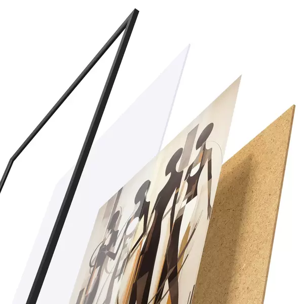 A poszter keretből, plexiből, nyomtatott képből és forgácslap hátlapból áll. A poszter a hátoldalon található rögzítőknek köszönhetően azonnal felakasztható a falra.
