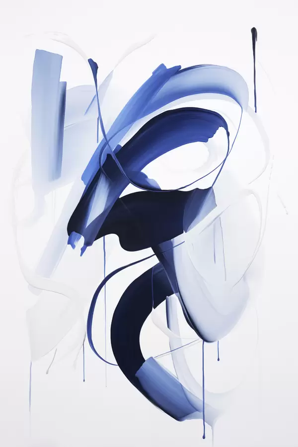 Poster Absztrakt kék ecsetvonás-szerű formák folyékony vonalakkal és görbékkel fehér háttér előtt, modern művészet Nr f47428