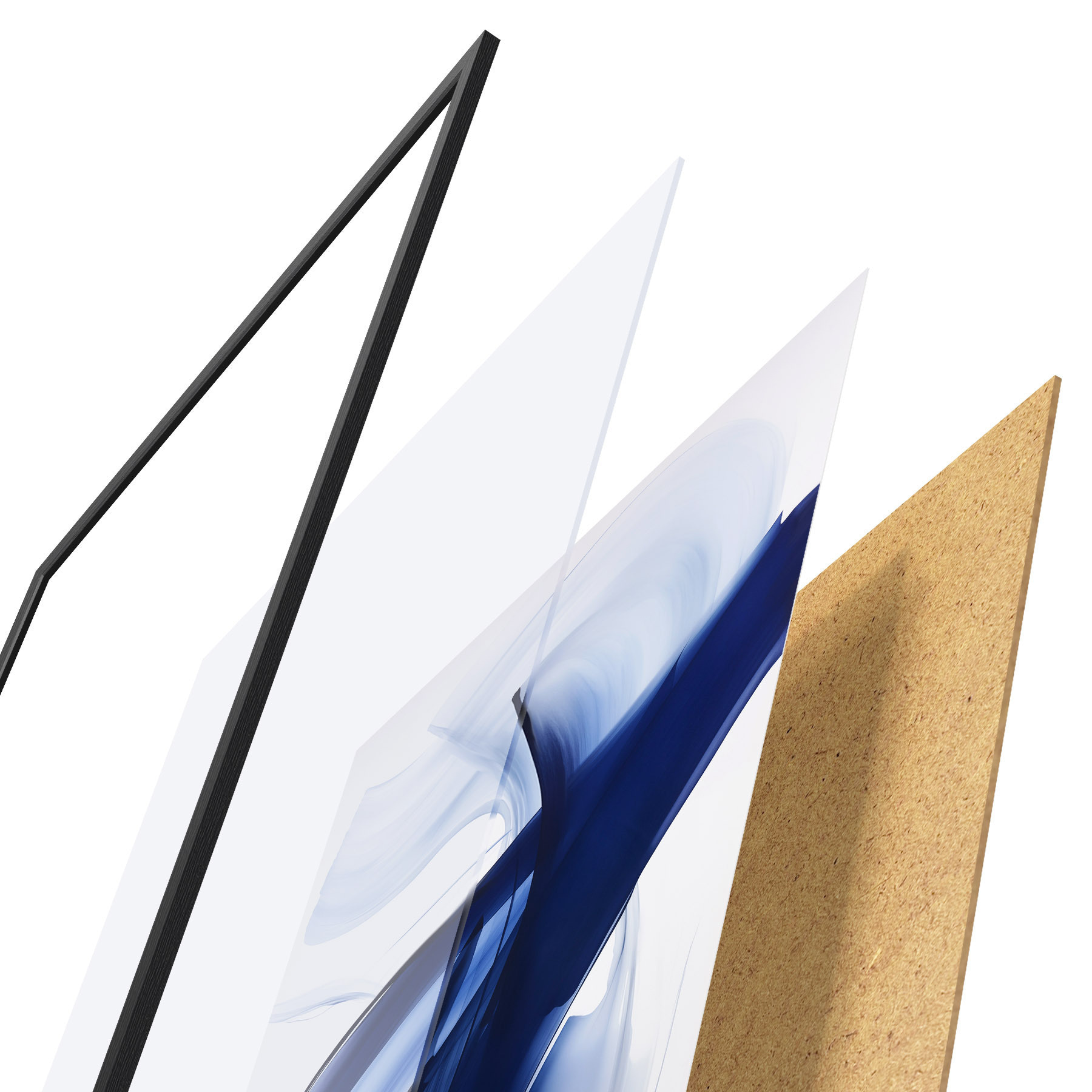 A poszter keretből, plexiből, nyomtatott képből és forgácslap hátlapból áll. A poszter a hátoldalon található rögzítőknek köszönhetően azonnal felakasztható a falra.