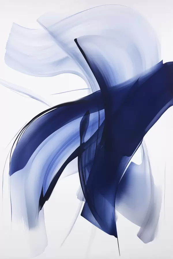 Plakát a sziklán Absztrakt kék ecsetvonás-szerű formák folyékony vonalakkal és görbékkel fehér háttér előtt, modern művészet f47429