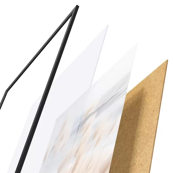 A poszter keretből, plexiből, nyomtatott képből és forgácslap hátlapból áll. A poszter a hátoldalon található rögzítőknek köszönhetően azonnal felakasztható a falra.