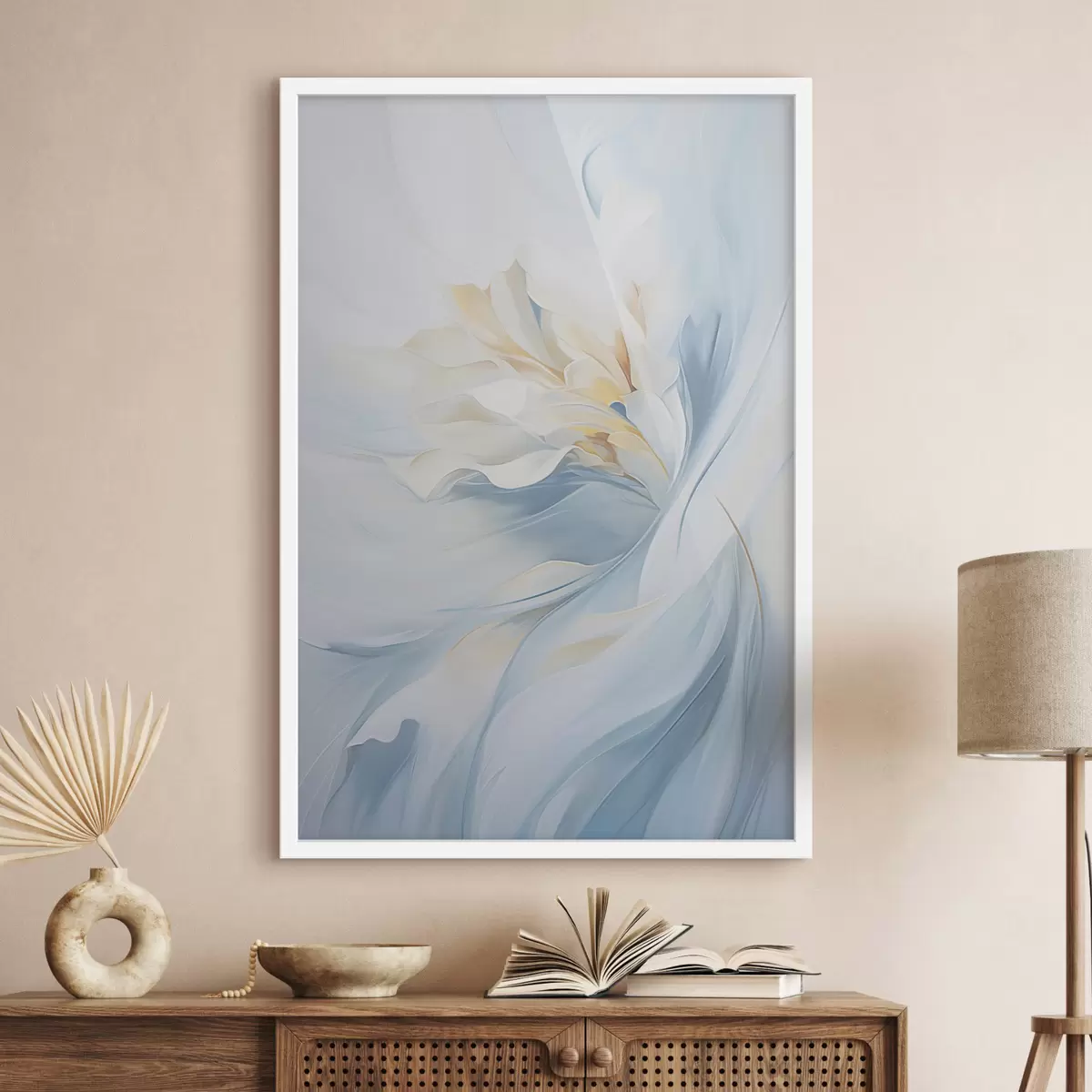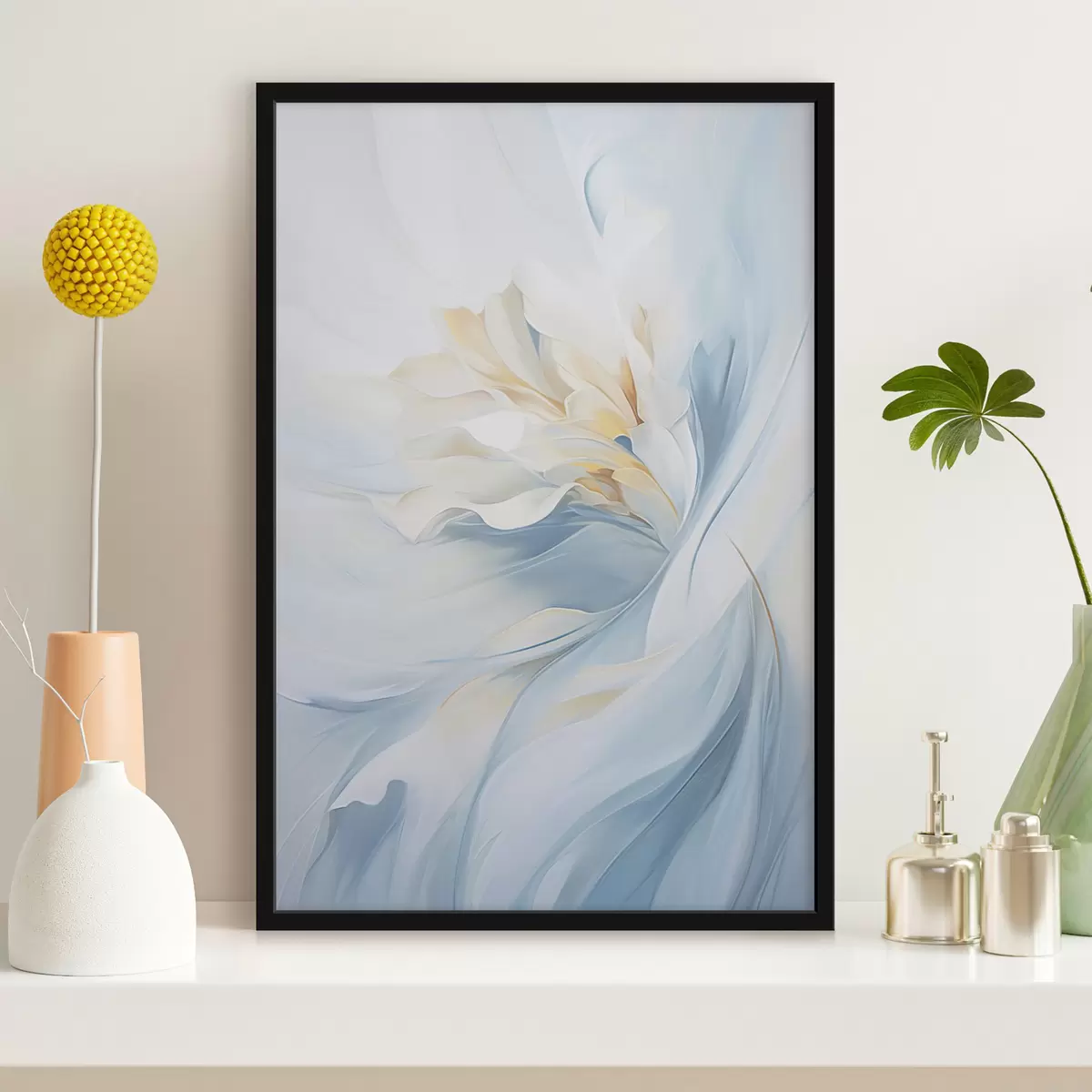Poster Absztrakt, finom, áttetsző szirmok, amelyek lágy megvilágításban és festői textúrával kifelé örvénylenek. Nr f47436