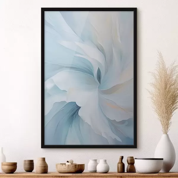 Poster Absztrakt, finom, áttetsző szirmok, amelyek lágy megvilágításban és festői textúrával kifelé örvénylenek. Nr f47437