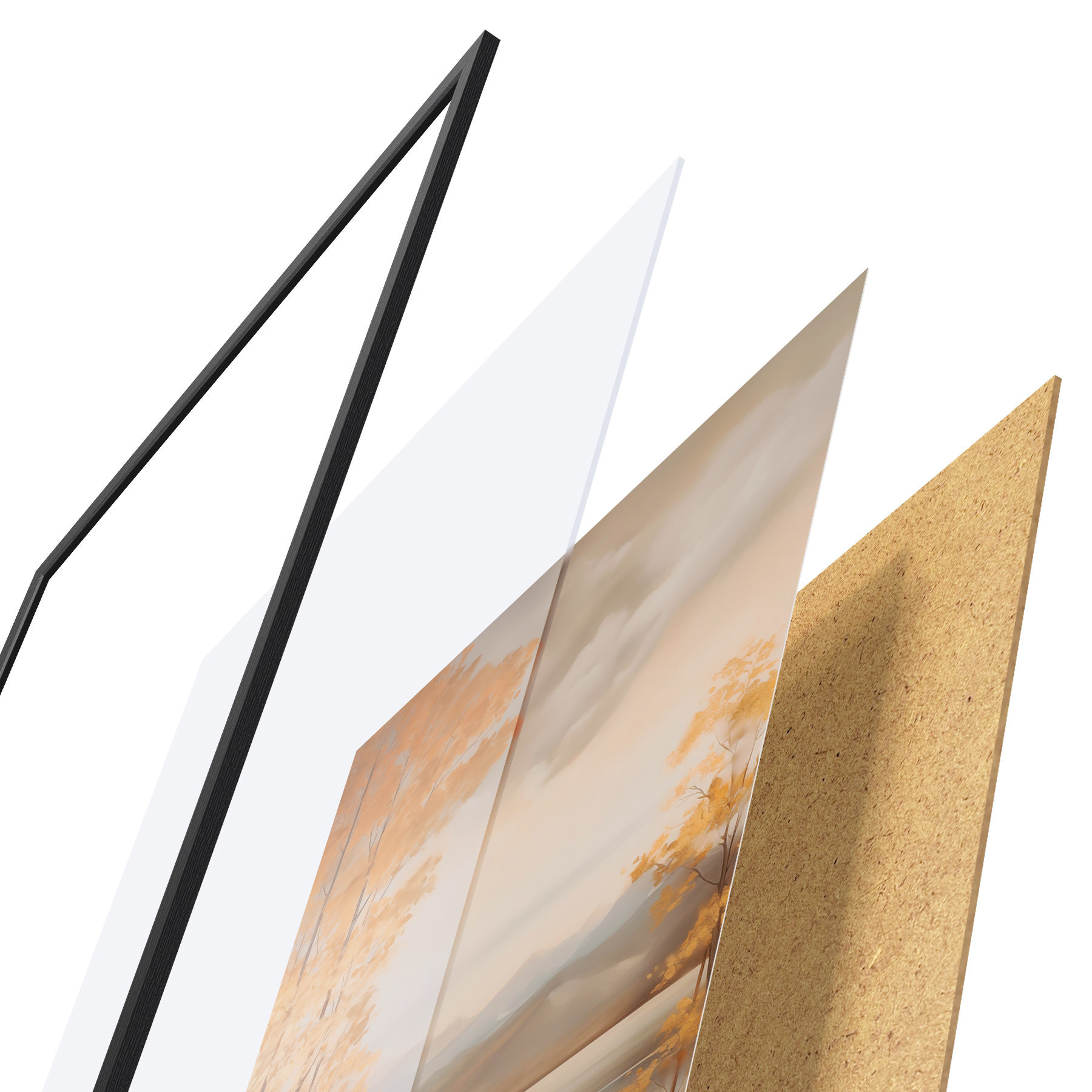 A poszter keretből, plexiből, nyomtatott képből és forgácslap hátlapból áll. A poszter a hátoldalon található rögzítőknek köszönhetően azonnal felakasztható a falra.
