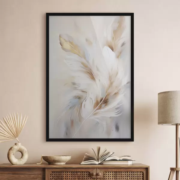 Poster Nagy, puha tollak fehér, sárga és barna árnyalatokkal, világos, absztrakt háttér előtt. Nr f47442