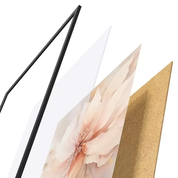 A poszter keretből, plexiből, nyomtatott képből és forgácslap hátlapból áll. A poszter a hátoldalon található rögzítőknek köszönhetően azonnal felakasztható a falra.