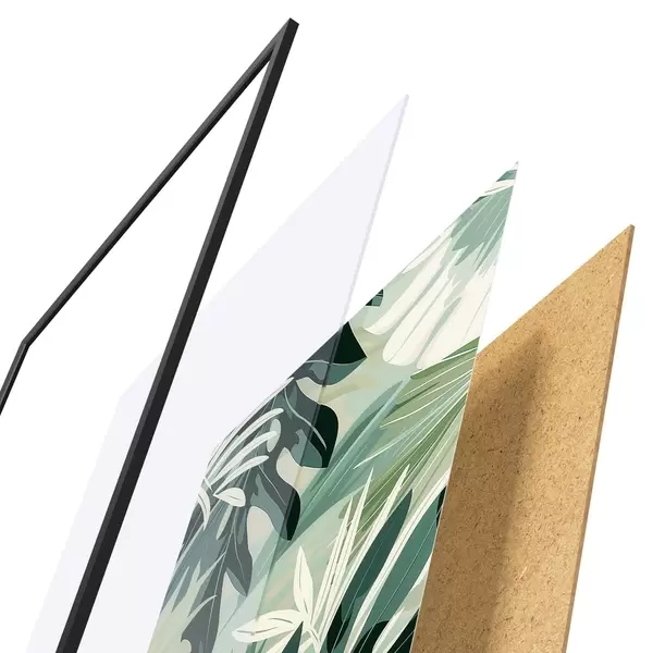 A poszter keretből, plexiből, nyomtatott képből és forgácslap hátlapból áll. A poszter a hátoldalon található rögzítőknek köszönhetően azonnal felakasztható a falra.
