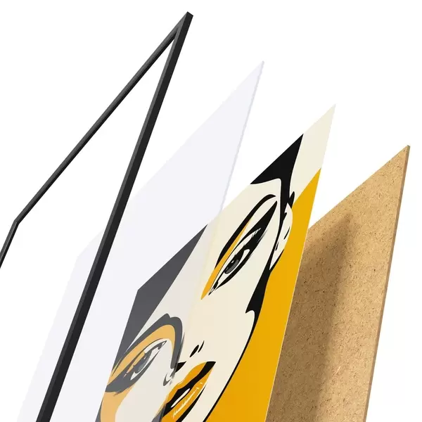 A poszter keretből, plexiből, nyomtatott képből és forgácslap hátlapból áll. A poszter a hátoldalon található rögzítőknek köszönhetően azonnal felakasztható a falra.