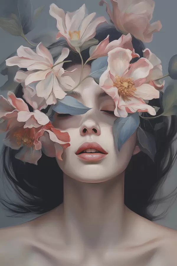 Poster Absztrakt női portré virágokkal Nr f47488