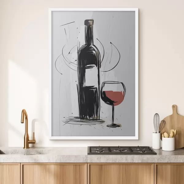 Plakát a sziklán Egy üveg és egy pohár bor f47492