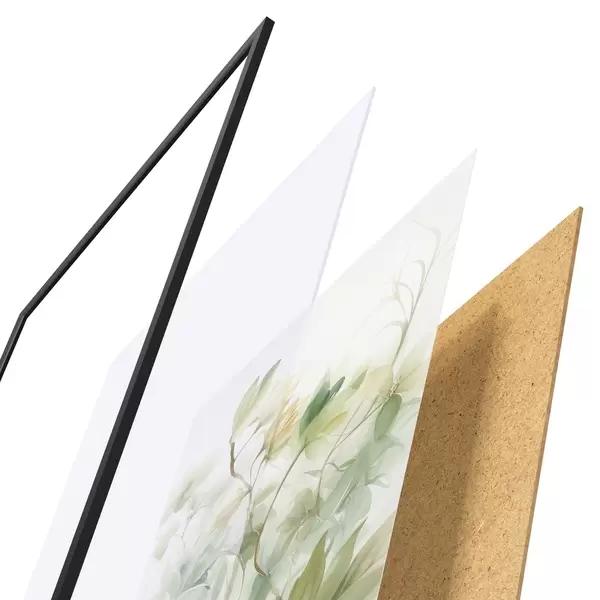 A poszter keretből, plexiből, nyomtatott képből és forgácslap hátlapból áll. A poszter a hátoldalon található rögzítőknek köszönhetően azonnal felakasztható a falra.