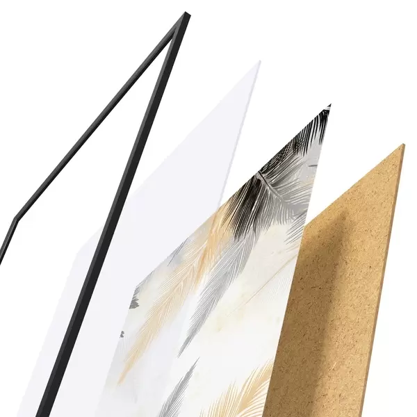A poszter keretből, plexiből, nyomtatott képből és forgácslap hátlapból áll. A poszter a hátoldalon található rögzítőknek köszönhetően azonnal felakasztható a falra.