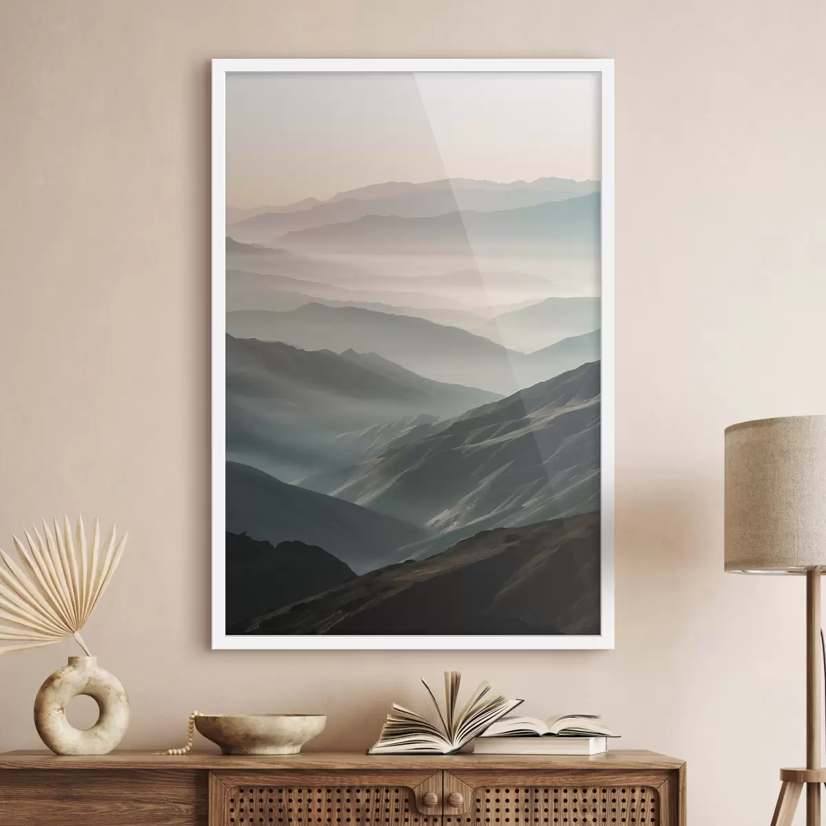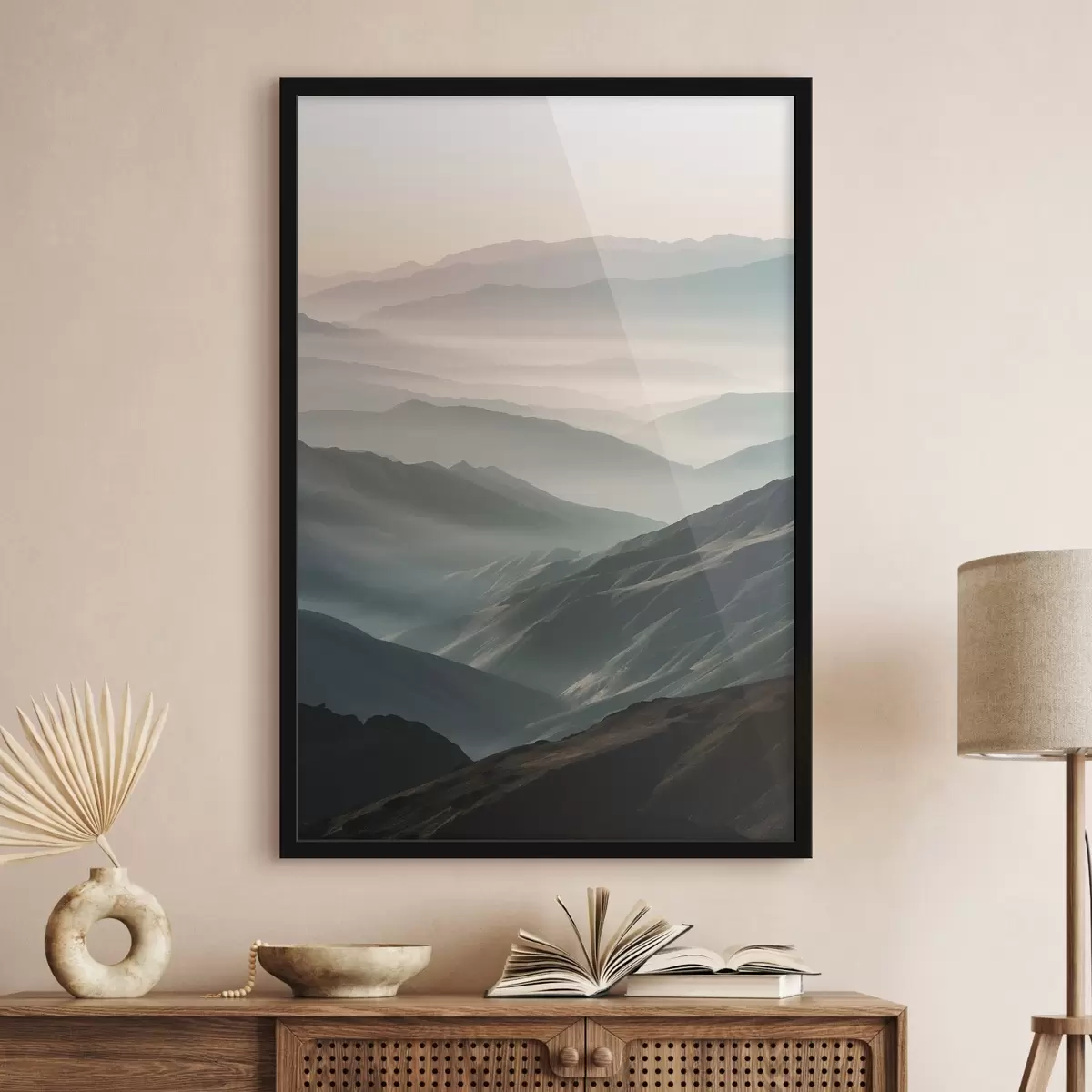Plakát a sziklán Ködben álló hegycsúcsok f47627