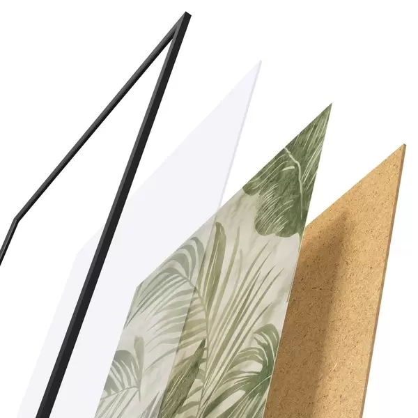 A poszter keretből, plexiből, nyomtatott képből és forgácslap hátlapból áll. A poszter a hátoldalon található rögzítőknek köszönhetően azonnal felakasztható a falra.