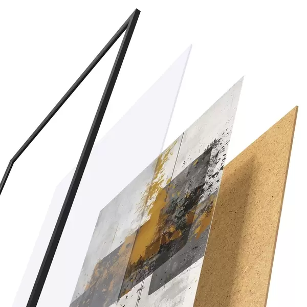 A poszter keretből, plexiből, nyomtatott képből és forgácslap hátlapból áll. A poszter a hátoldalon található rögzítőknek köszönhetően azonnal felakasztható a falra.