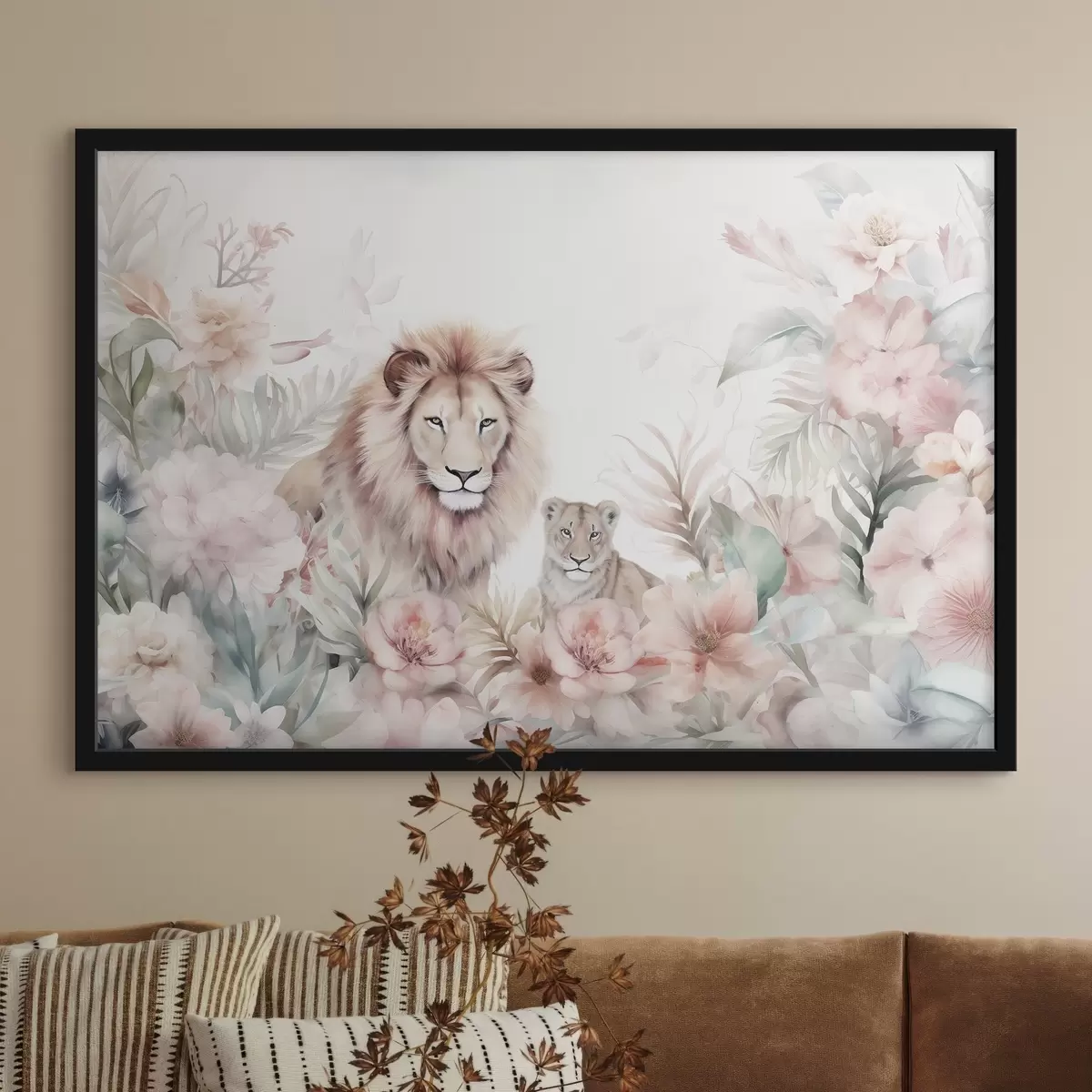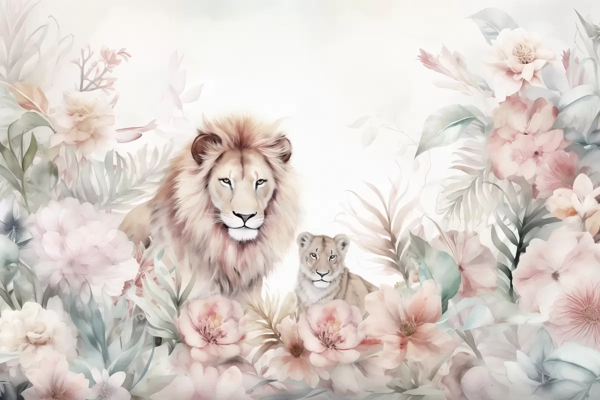 Poster Oroszlánok trópusi bozótosban, akvarell utánzat Nr f47640