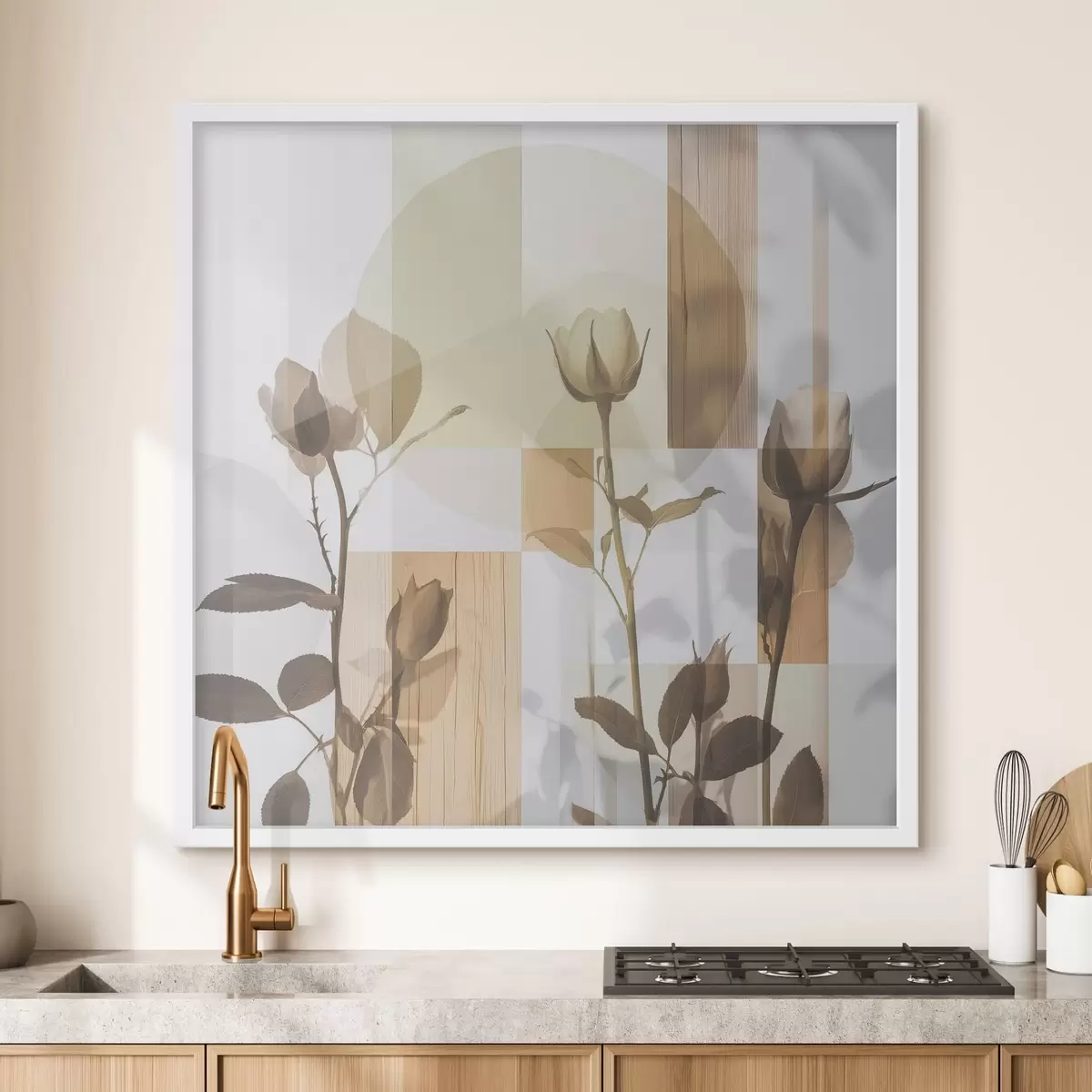Plakát a sziklán Absztrakció virágokkal és geometriai alakzatokkal f47654