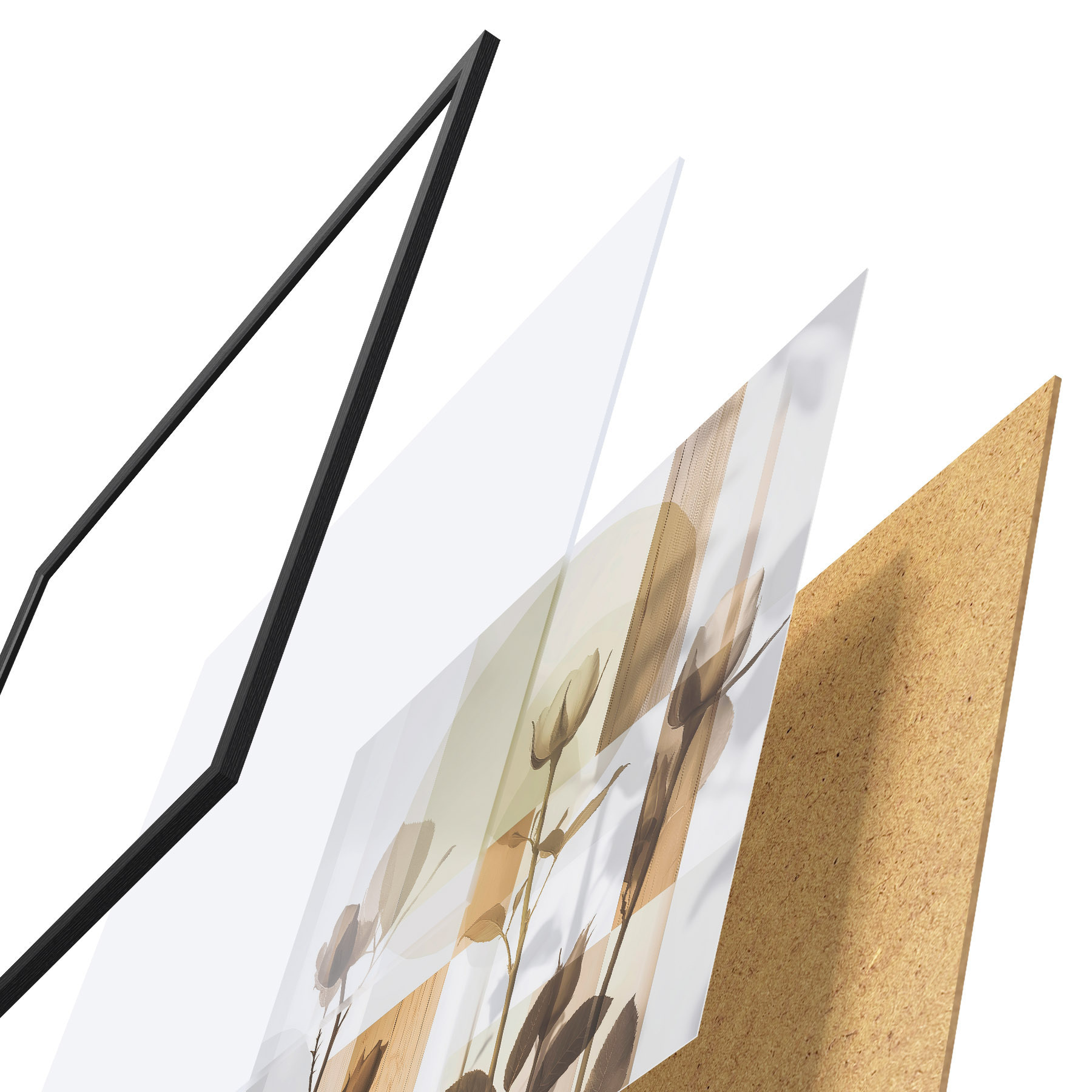 A poszter keretből, plexiből, nyomtatott képből és forgácslap hátlapból áll. A poszter a hátoldalon található rögzítőknek köszönhetően azonnal felakasztható a falra.