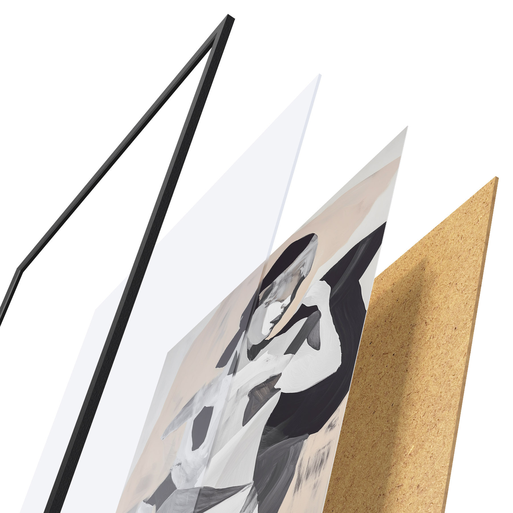 A poszter keretből, plexiből, nyomtatott képből és forgácslap hátlapból áll. A poszter a hátoldalon található rögzítőknek köszönhetően azonnal felakasztható a falra.