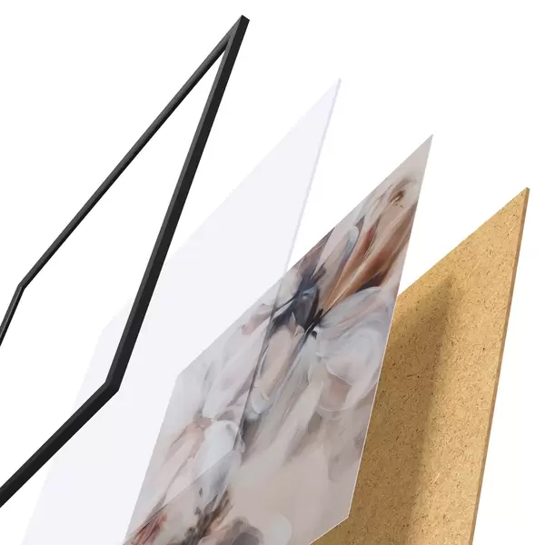 A poszter keretből, plexiből, nyomtatott képből és forgácslap hátlapból áll. A poszter a hátoldalon található rögzítőknek köszönhetően azonnal felakasztható a falra.