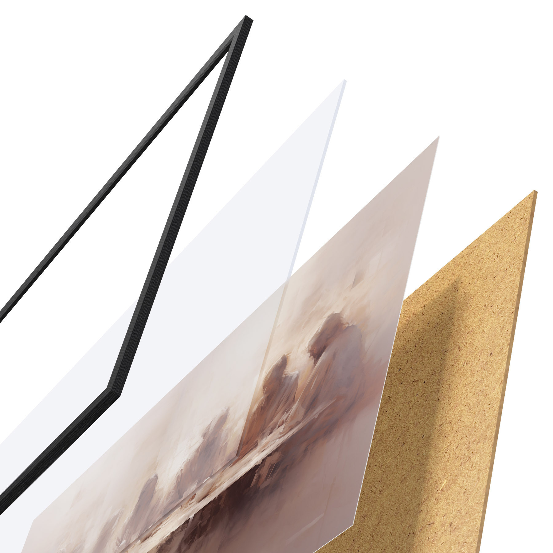 A poszter keretből, plexiből, nyomtatott képből és forgácslap hátlapból áll. A poszter a hátoldalon található rögzítőknek köszönhetően azonnal felakasztható a falra.