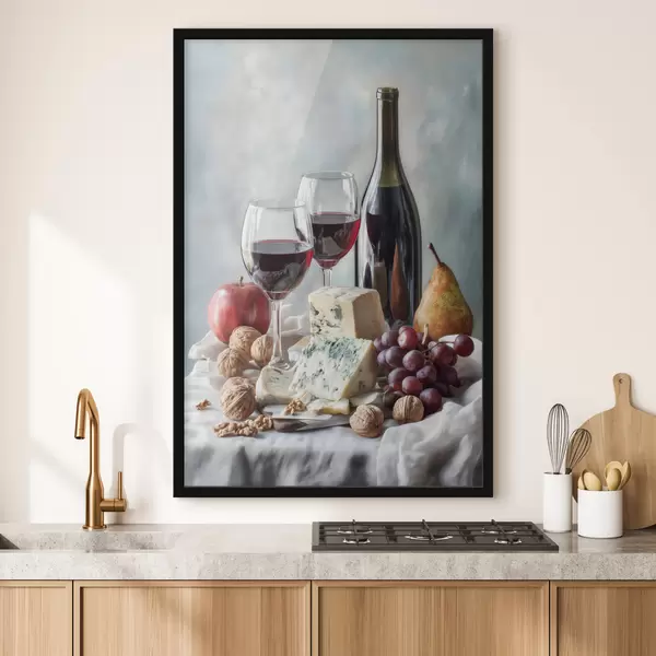 Poster csendélet borral, sajttal és dióval Nr f47686