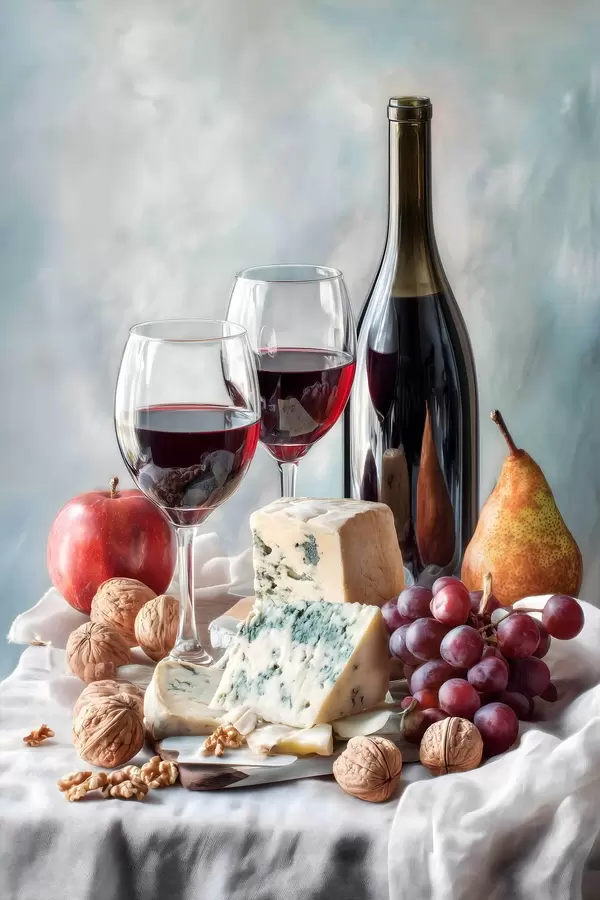 Poster csendélet borral, sajttal és dióval Nr f47686