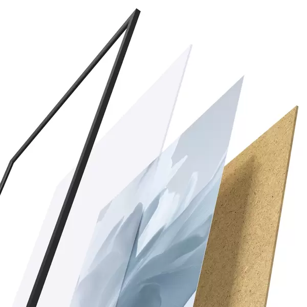 A poszter keretből, plexiből, nyomtatott képből és forgácslap hátlapból áll. A poszter a hátoldalon található rögzítőknek köszönhetően azonnal felakasztható a falra.