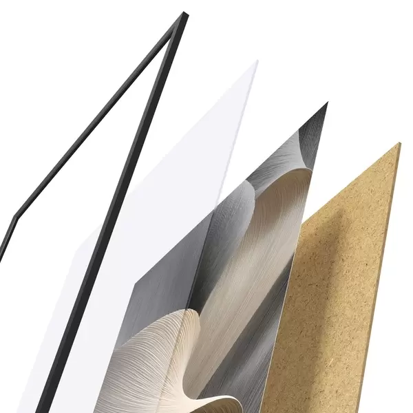 A poszter keretből, plexiből, nyomtatott képből és forgácslap hátlapból áll. A poszter a hátoldalon található rögzítőknek köszönhetően azonnal felakasztható a falra.