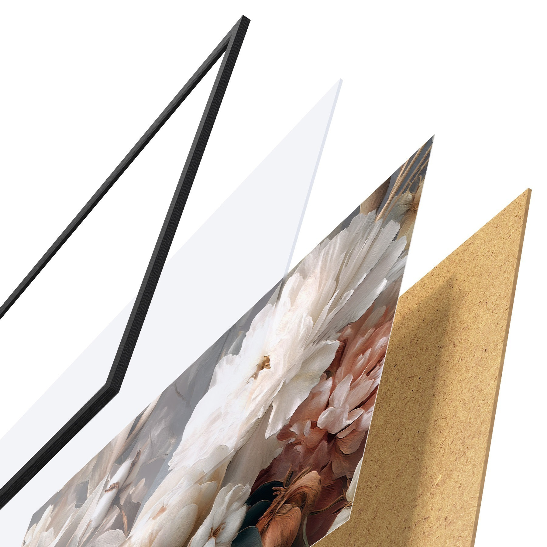A poszter keretből, plexiből, nyomtatott képből és forgácslap hátlapból áll. A poszter a hátoldalon található rögzítőknek köszönhetően azonnal felakasztható a falra.