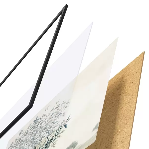 A poszter keretből, plexiből, nyomtatott képből és forgácslap hátlapból áll. A poszter a hátoldalon található rögzítőknek köszönhetően azonnal felakasztható a falra.