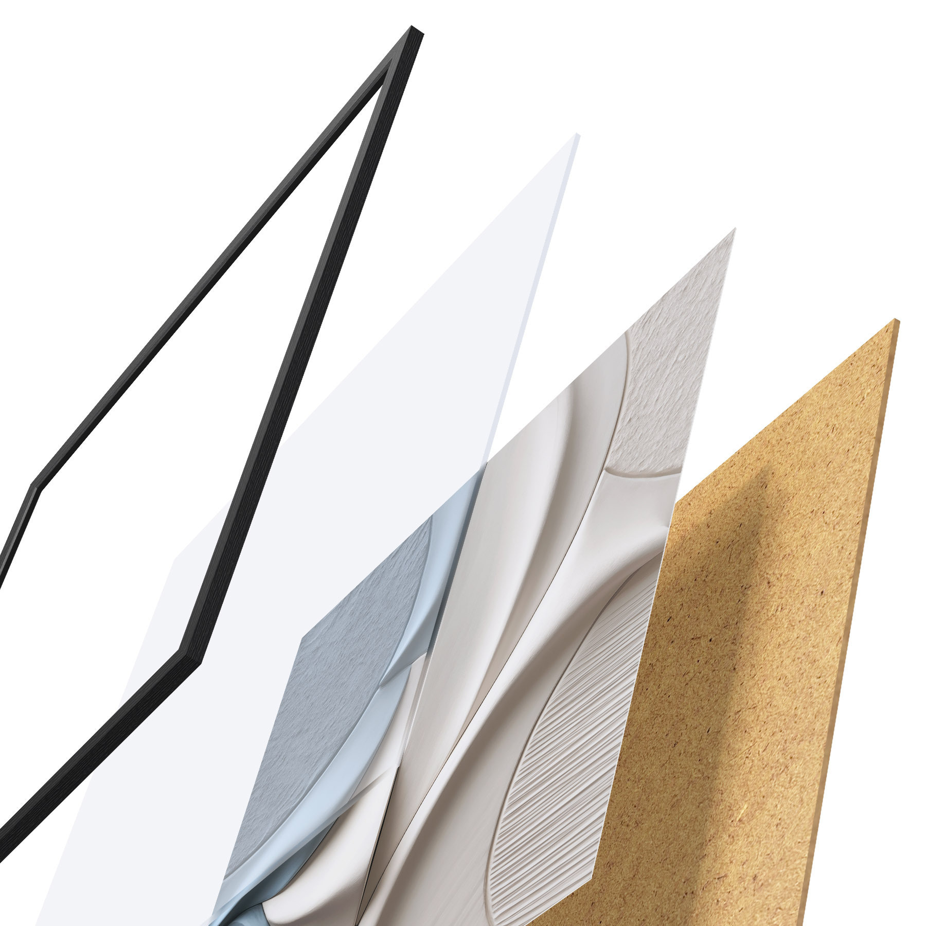 A poszter keretből, plexiből, nyomtatott képből és forgácslap hátlapból áll. A poszter a hátoldalon található rögzítőknek köszönhetően azonnal felakasztható a falra.