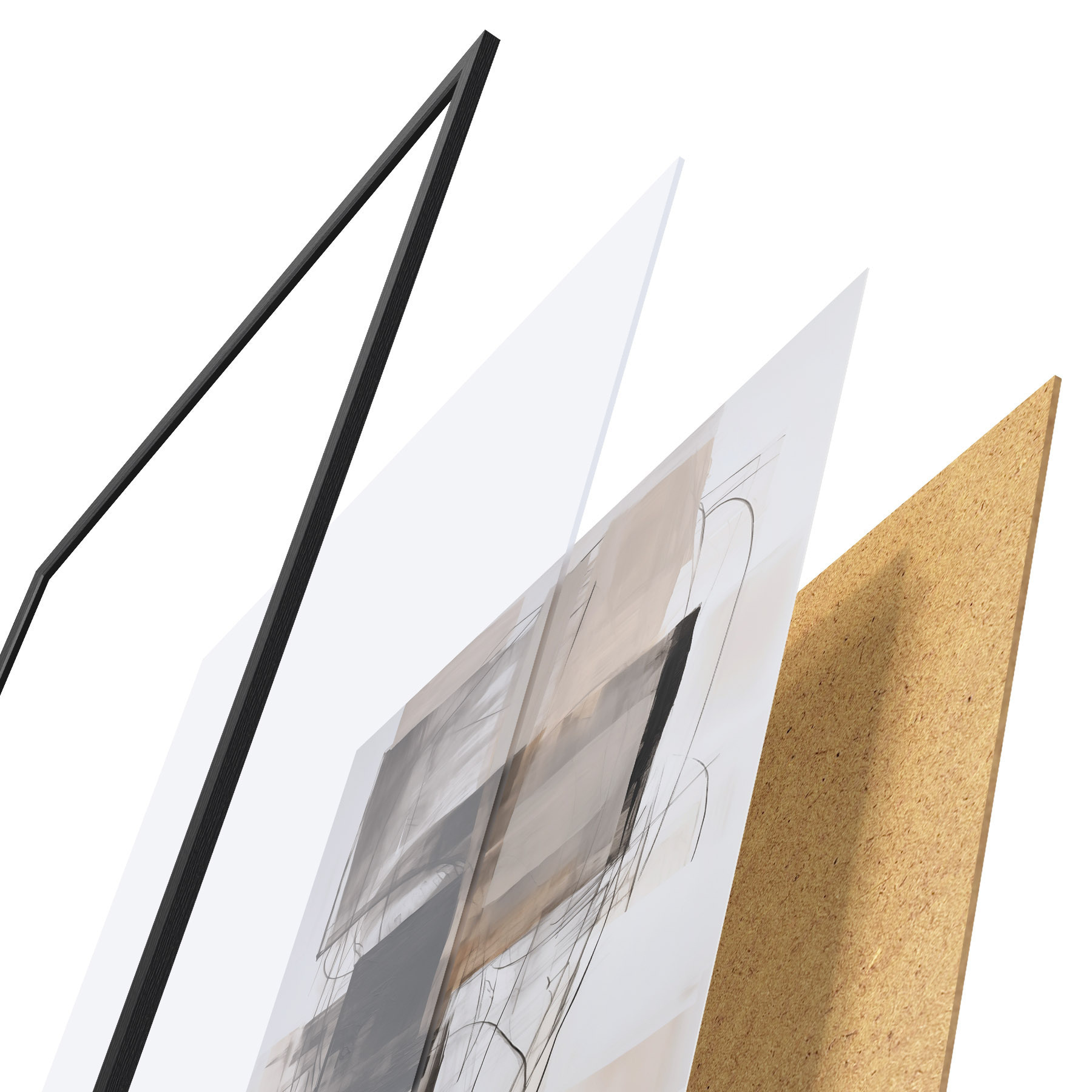 A poszter keretből, plexiből, nyomtatott képből és forgácslap hátlapból áll. A poszter a hátoldalon található rögzítőknek köszönhetően azonnal felakasztható a falra.