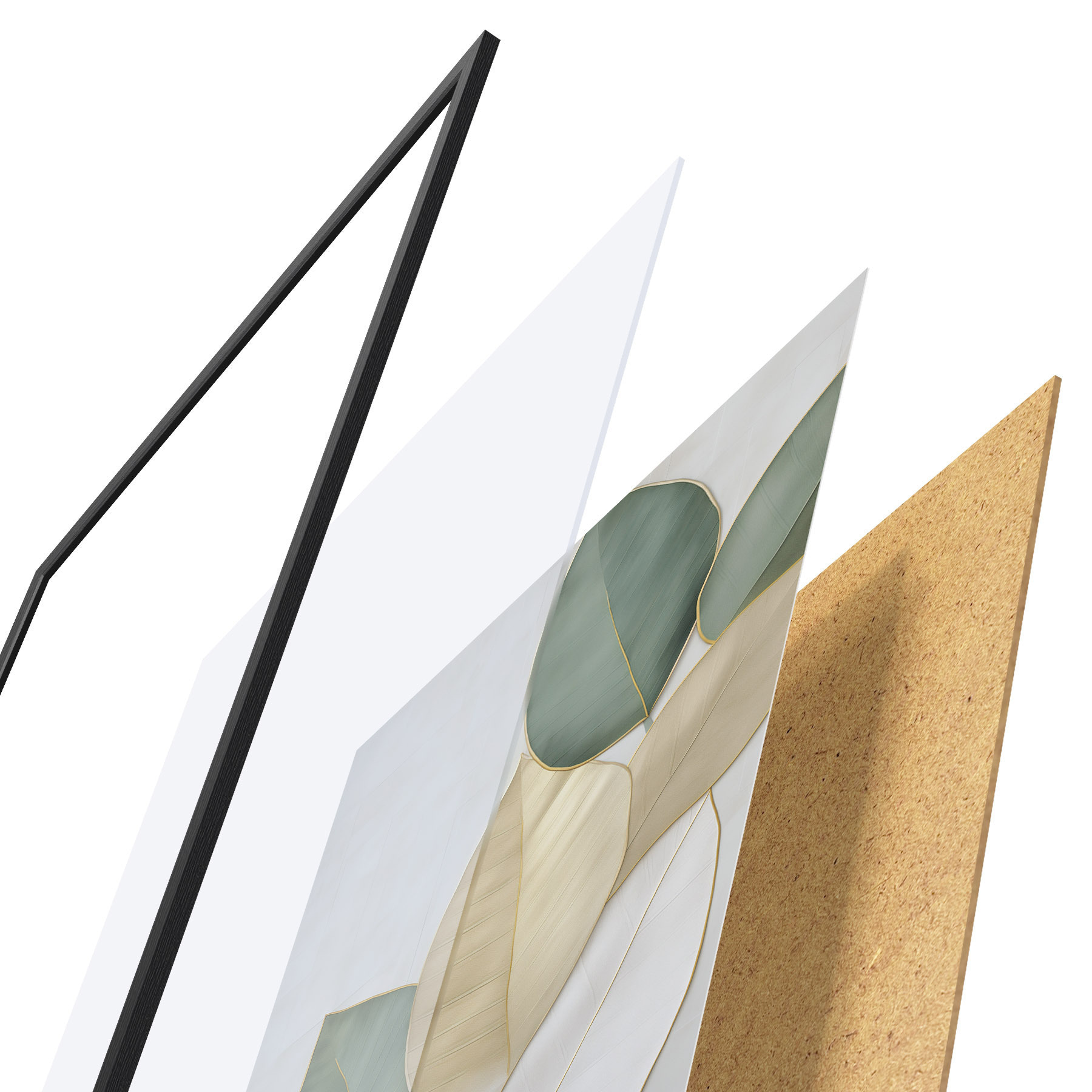 A poszter keretből, plexiből, nyomtatott képből és forgácslap hátlapból áll. A poszter a hátoldalon található rögzítőknek köszönhetően azonnal felakasztható a falra.