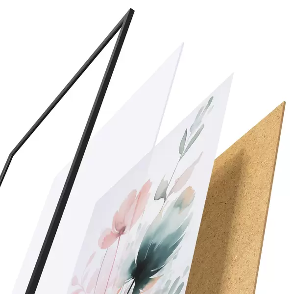 A poszter keretből, plexiből, nyomtatott képből és forgácslap hátlapból áll. A poszter a hátoldalon található rögzítőknek köszönhetően azonnal felakasztható a falra.