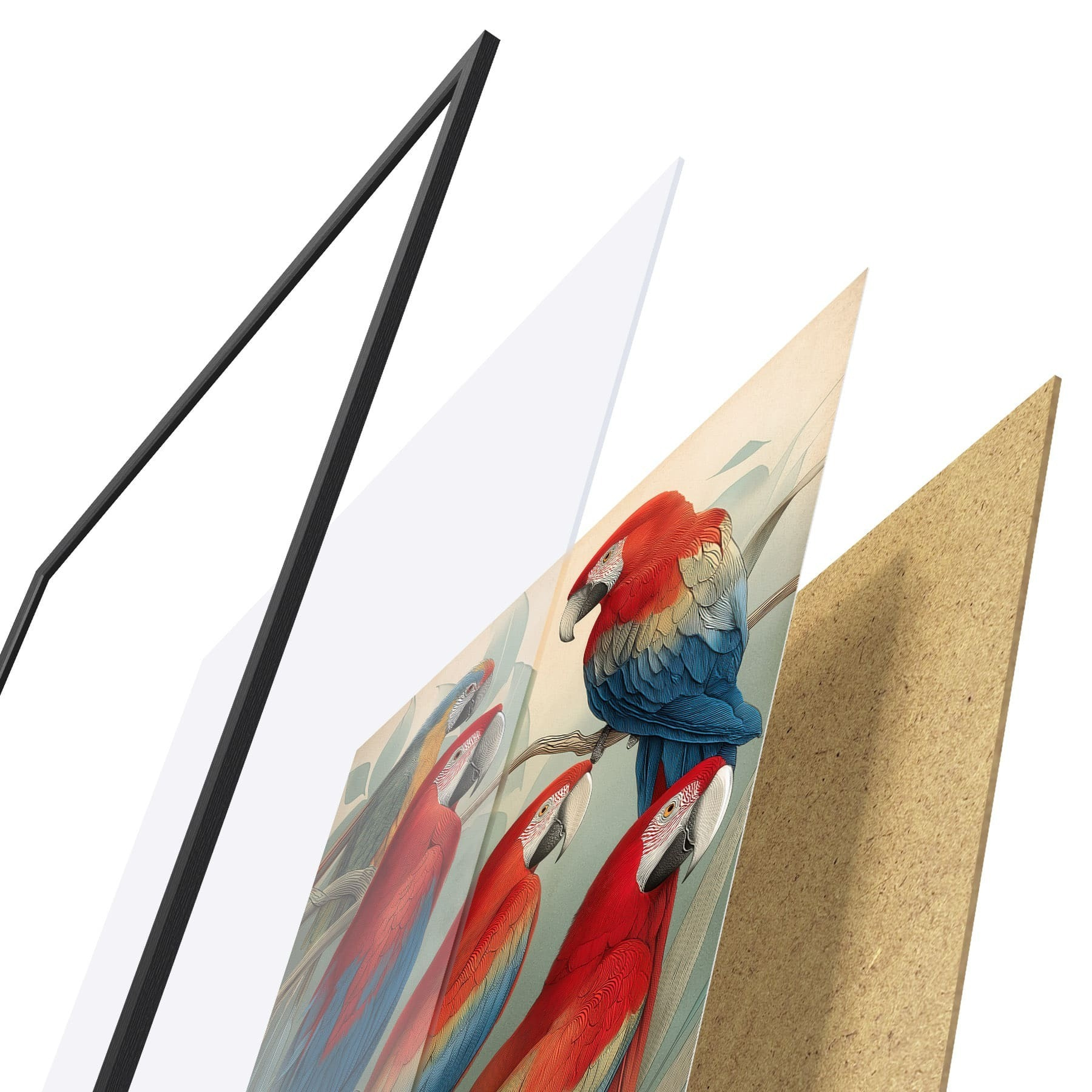 A poszter keretből, plexiből, nyomtatott képből és forgácslap hátlapból áll. A poszter a hátoldalon található rögzítőknek köszönhetően azonnal felakasztható a falra.