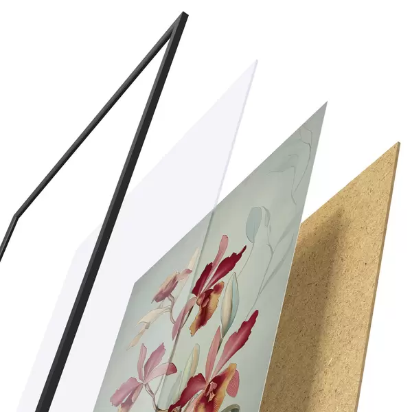 A poszter keretből, plexiből, nyomtatott képből és forgácslap hátlapból áll. A poszter a hátoldalon található rögzítőknek köszönhetően azonnal felakasztható a falra.