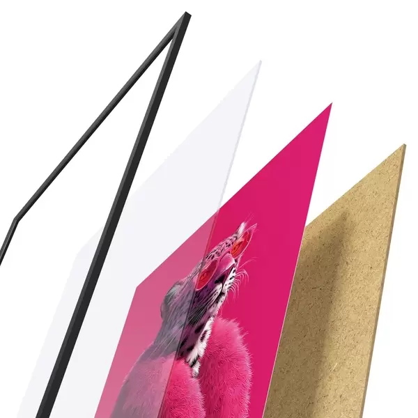 A poszter keretből, plexiből, nyomtatott képből és forgácslap hátlapból áll. A poszter a hátoldalon található rögzítőknek köszönhetően azonnal felakasztható a falra.