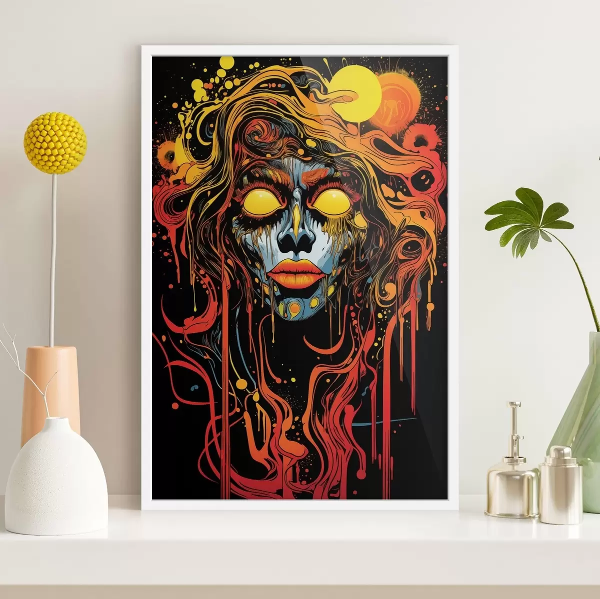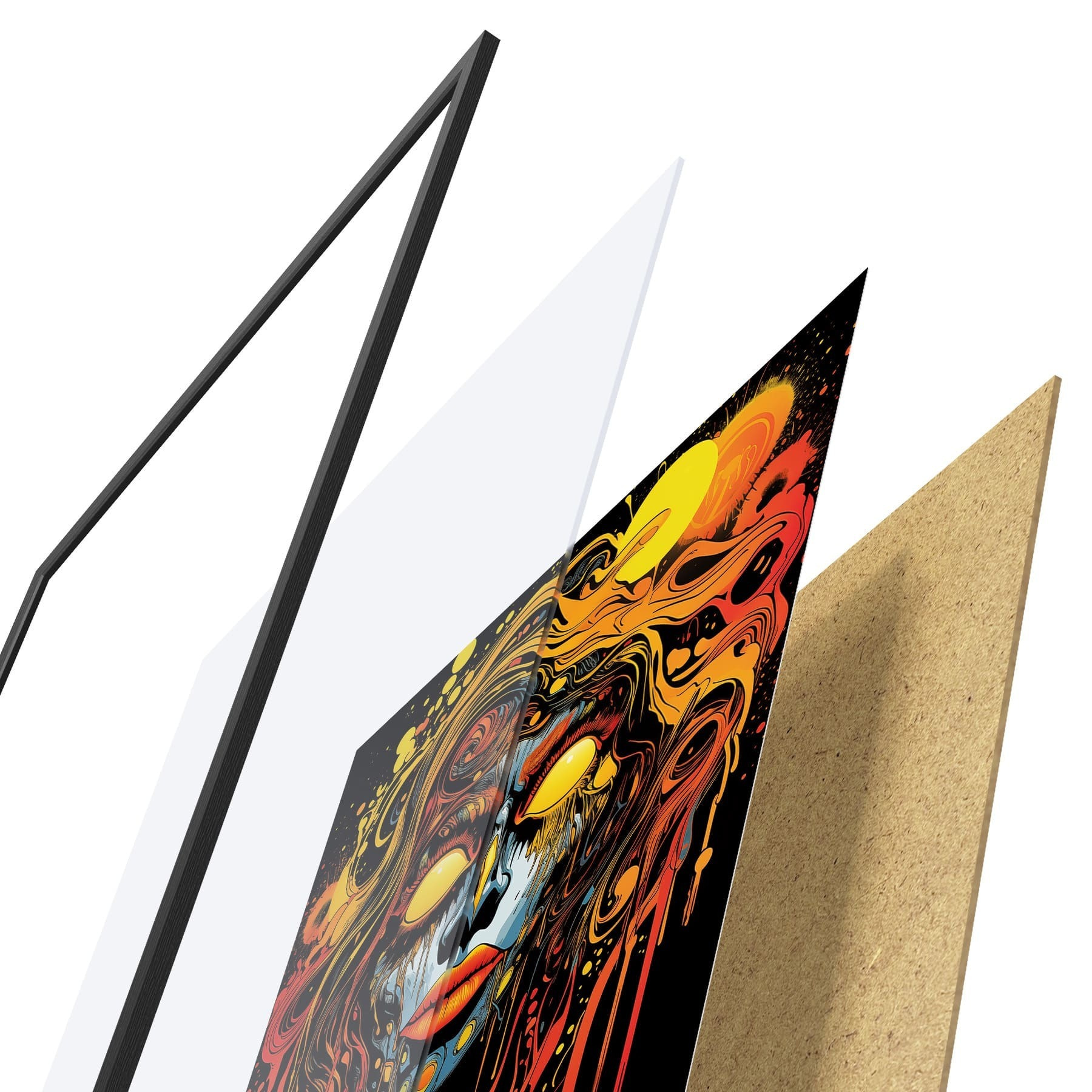 A poszter keretből, plexiből, nyomtatott képből és forgácslap hátlapból áll. A poszter a hátoldalon található rögzítőknek köszönhetően azonnal felakasztható a falra.