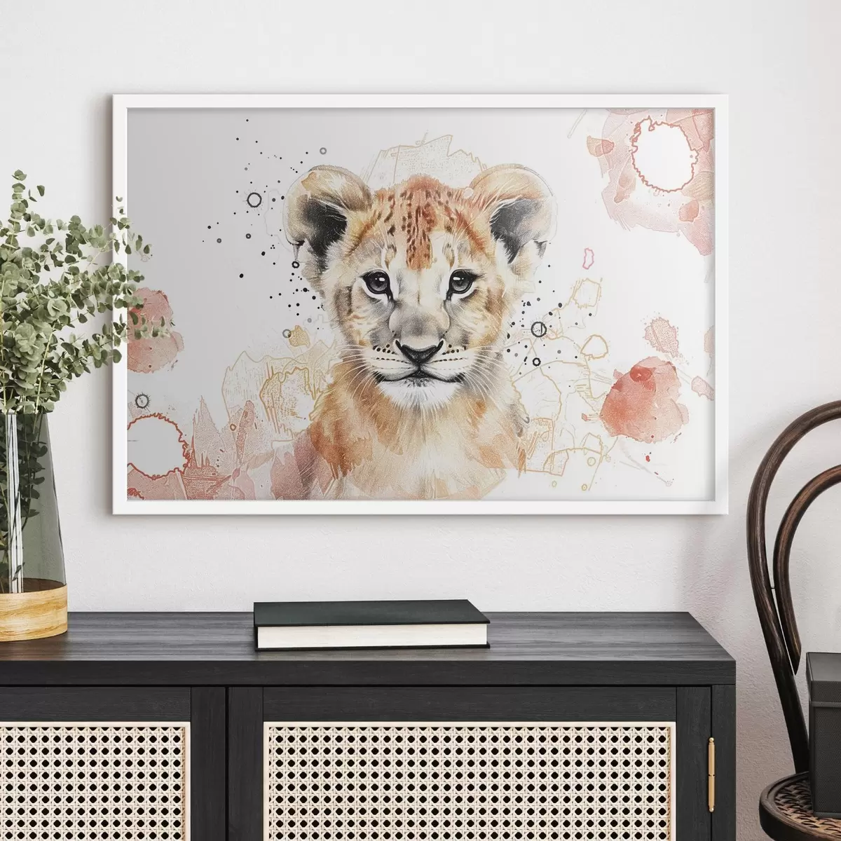Poster Akkvarell oroszlánkölyök, ceruzaeffektus Nr f47742