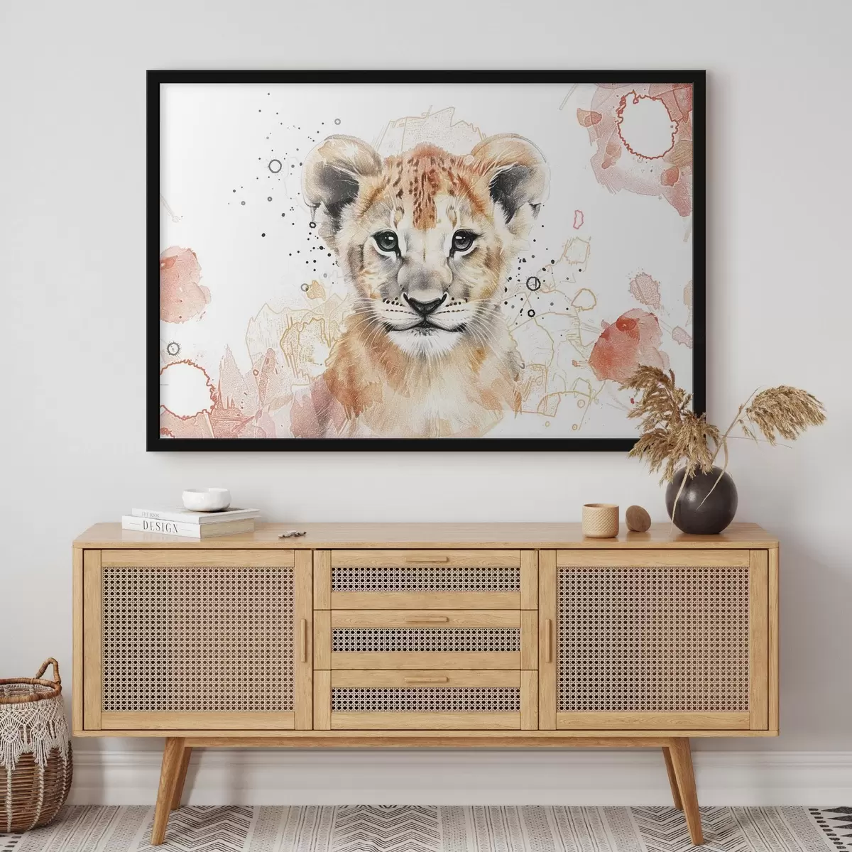 Plakát a sziklán Akkvarell oroszlánkölyök, ceruzaeffektus f47742