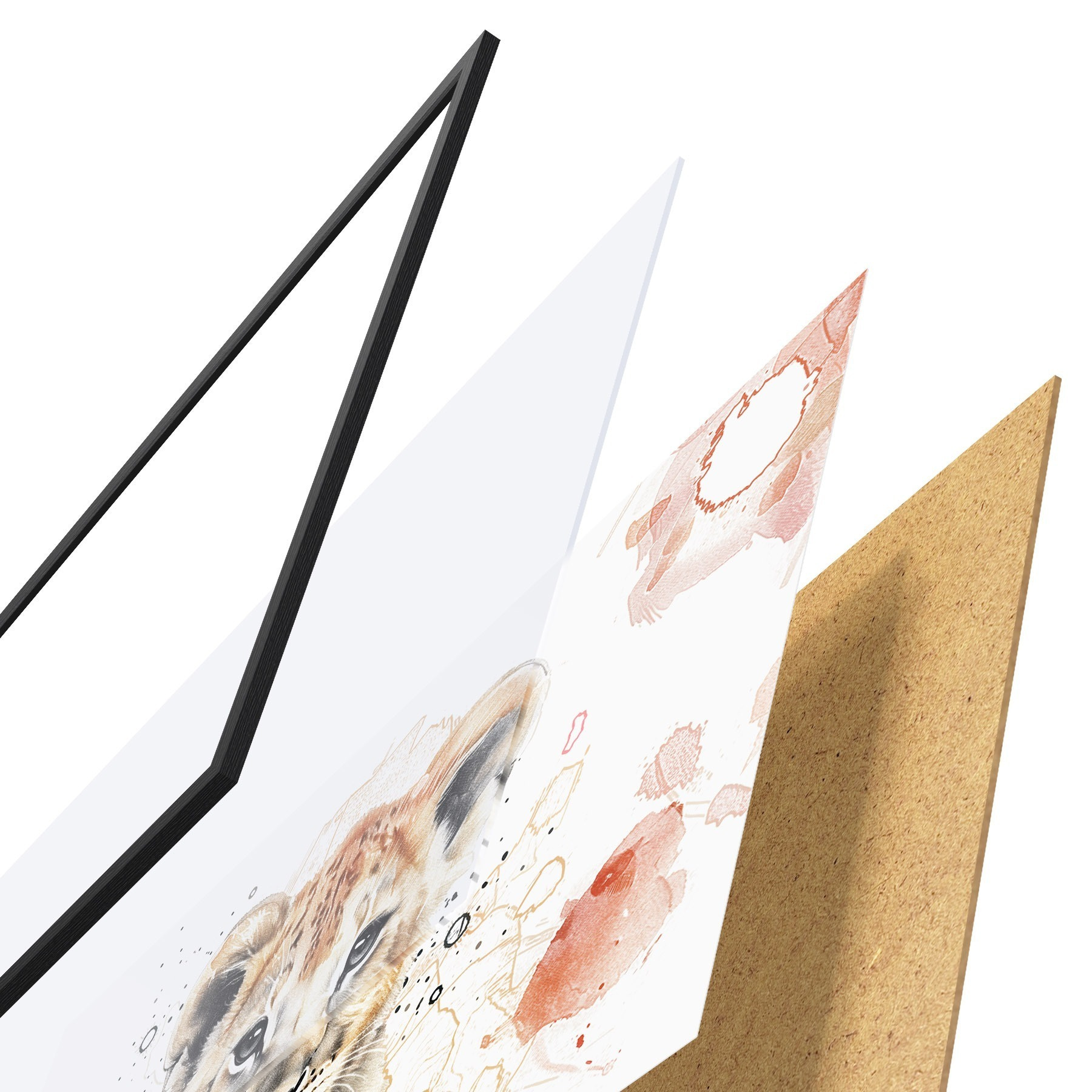 A poszter keretből, plexiből, nyomtatott képből és forgácslap hátlapból áll. A poszter a hátoldalon található rögzítőknek köszönhetően azonnal felakasztható a falra.