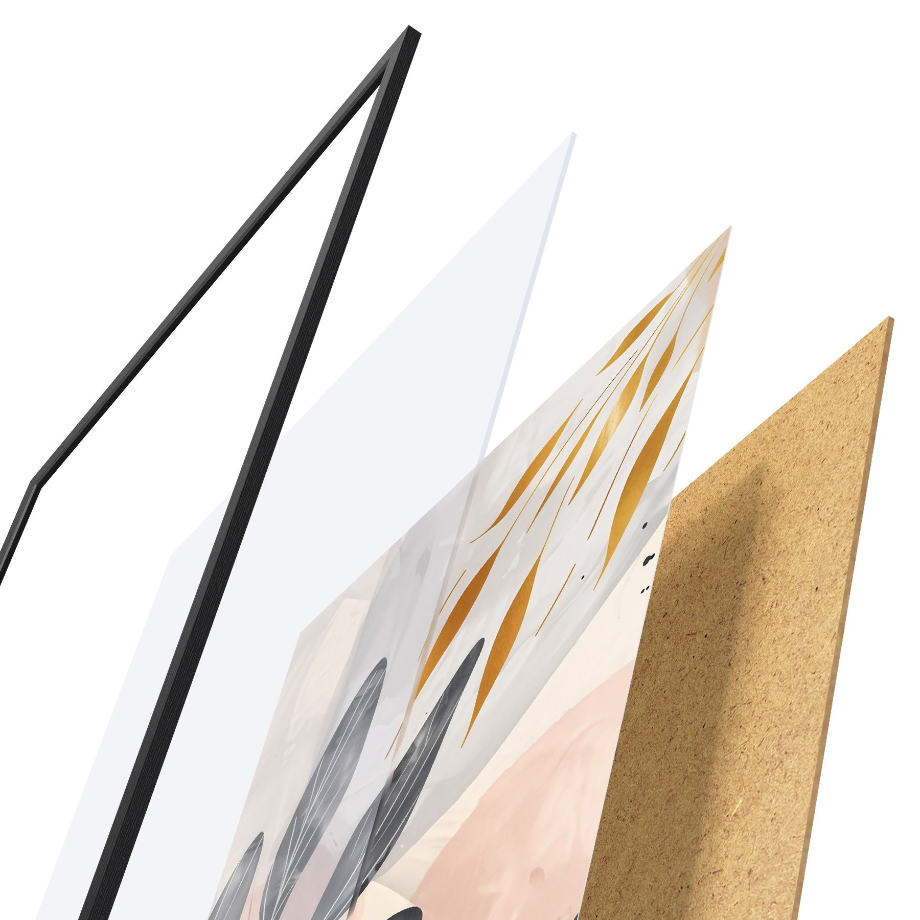 A poszter keretből, plexiből, nyomtatott képből és forgácslap hátlapból áll. A poszter a hátoldalon található rögzítőknek köszönhetően azonnal felakasztható a falra.