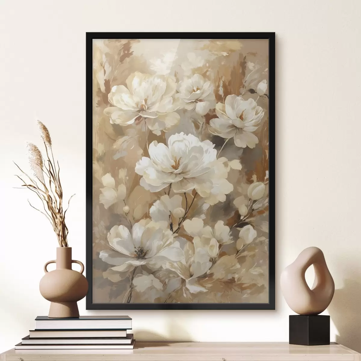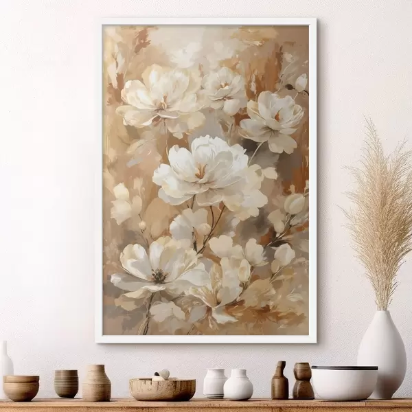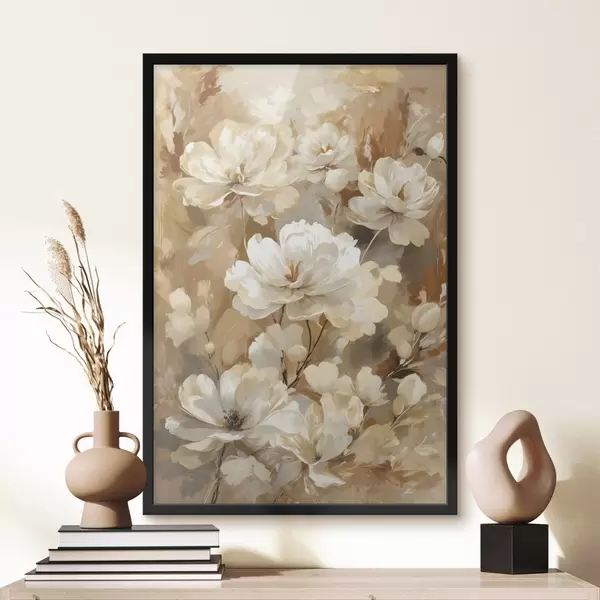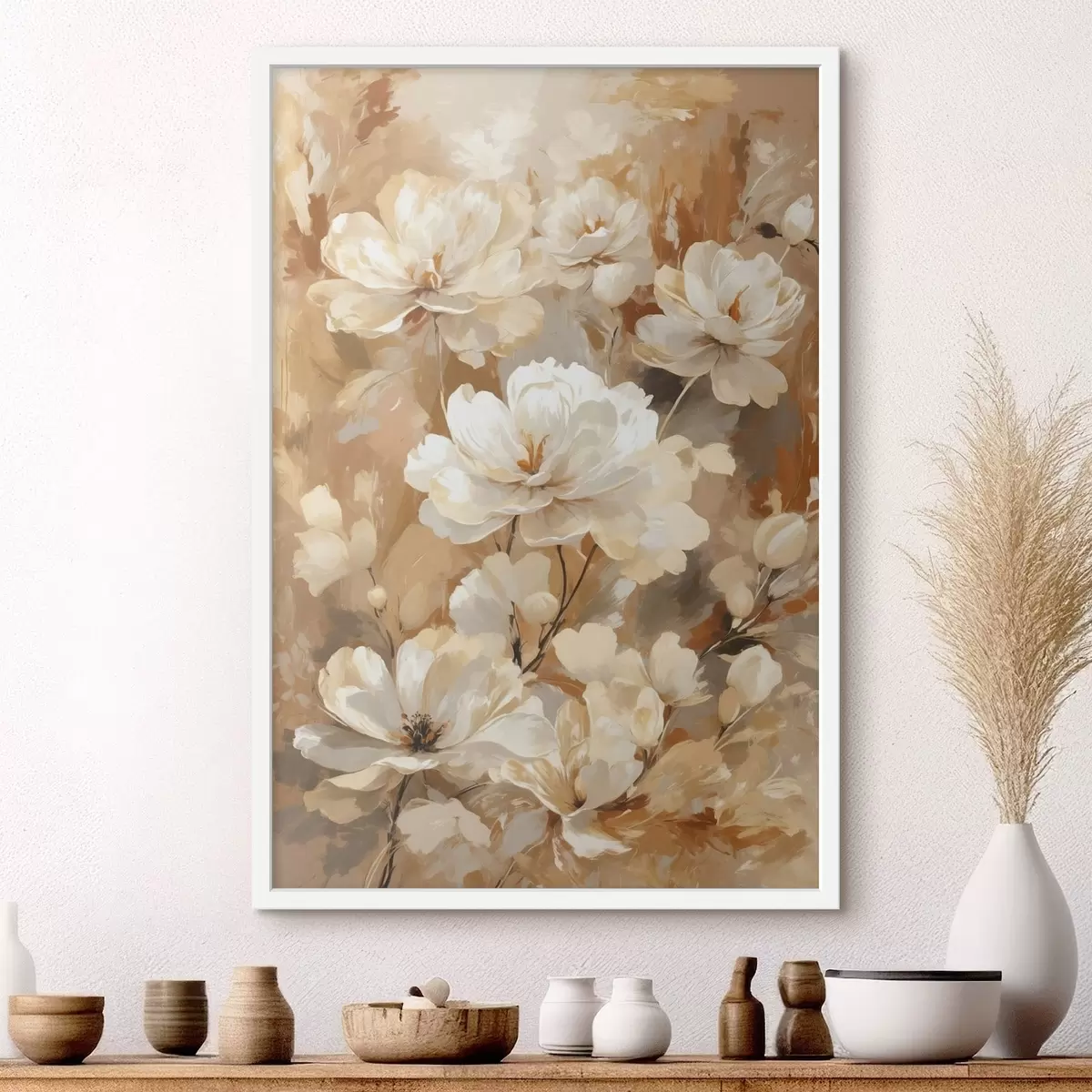Poster Széles ecsetvonásokkal festett nagy, világos virágok Nr f47761